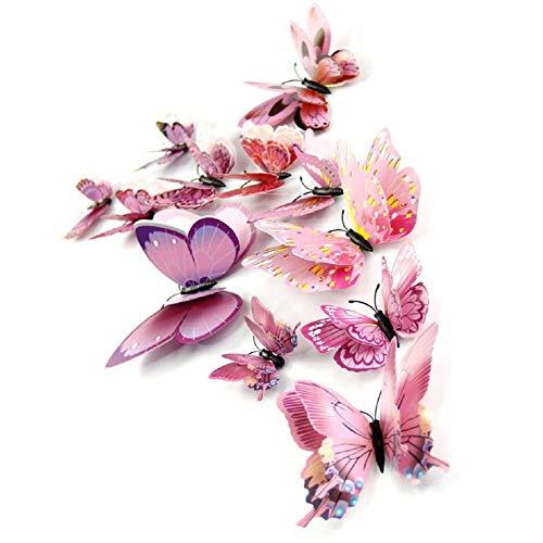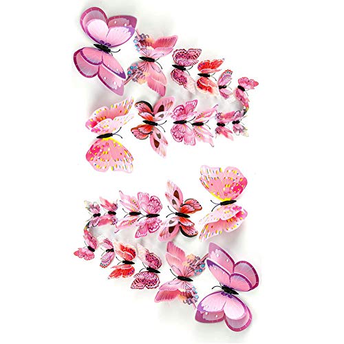 セット内容: とても色鮮やかでインテリアにぴったりの立体蝶々24匹ピンク