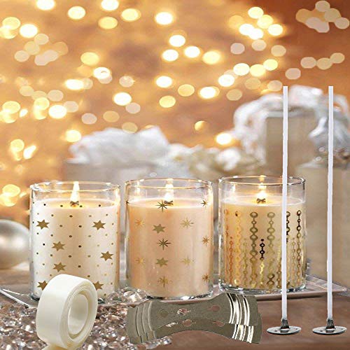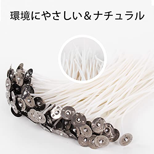100個の天然キャンドル芯、100枚の芯ステッカー、2つの芯ホルダーセンターデバイス、低煙6インチプレワック