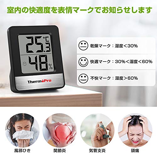 | 商品名 | ThermoProサーモプロ 湿度計 温度計 温湿度計デジタル 湿度計室内 大画面 見やすい 顔マーク 壁掛け 卓上スタン |