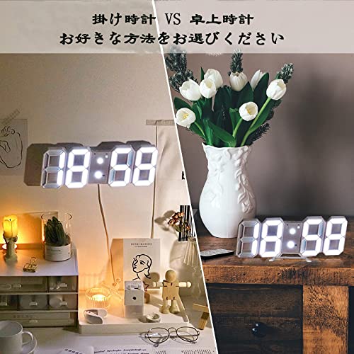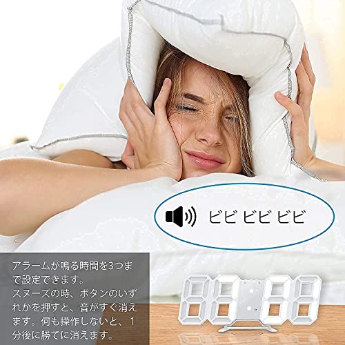 LEDデジタル時計 目覚まし時計 3D LED時計 置き時計 壁掛け時計 掛け時計 アラーム機能付き 、3つの明るさ調整,