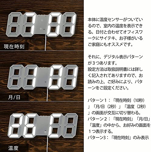 | 商品名 | LEDデジタル時計 目覚まし時計 3D LED時計 置き時計 壁掛け時計 掛け時計 アラーム機能付き 、3つの明るさ調整, |