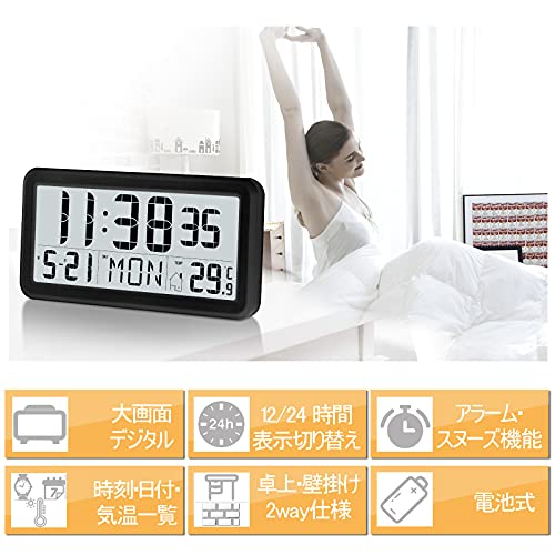 【デジタル表示】:大きなディスプレイを搭載しており、時間のことを見やすいです。時間、温度と日付を表示します。