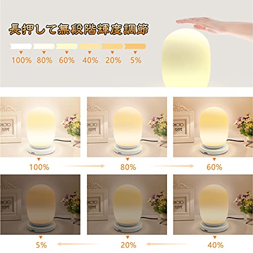 「タッチ式&無段階輝度調節」 ナイトライトがかなり便利なタッチ式を採用し、頂部の最中心の部分をタッチするだけで、点灯、輝度調節できます。夜間が起きる時、ベッドサイドランプの頂部の最中心の部分を二回短く押すと、点灯できる。まだ長押すと、0%から100%まで無段階輝度調節できる。部屋の暗さにより