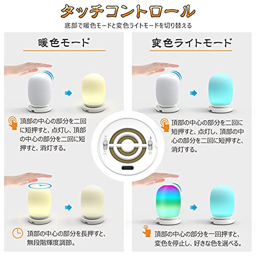 「最新のデザイン、便利なナイトナイト」 弊社が最新開発した卵型のナイトライト、夜間のパートナー!手のひらを頂部のまん中心に軽くタッチするだけで、点灯、輝度調整、消灯をできる。ナイトライトがシリカゲル材質を採用し、間接照明により、光が柔らかく薄い暗いく、睡眠を助け、夜間の目覚めや夜間の起きなどに最適。授乳灯、オムツ替える用として、いいアイテム!