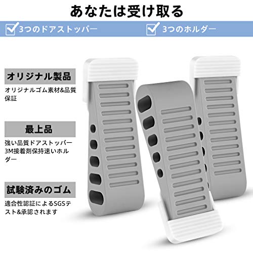 ラバー製 ドアストッパー 弾性あるドアホルダー 蓋付き 玄関 室内に適用(3個セット) (グレー)