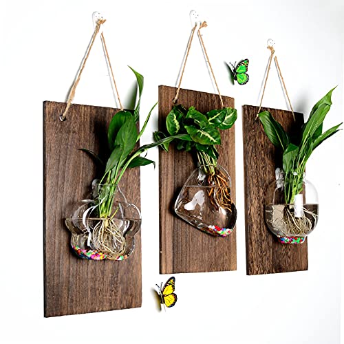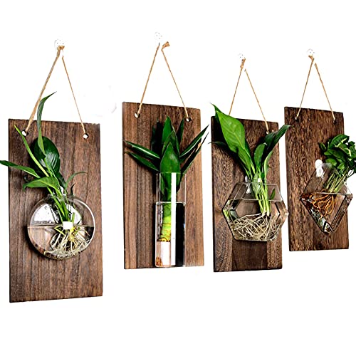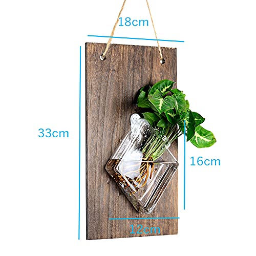 HIGHAWK壁掛け 木製 花 フラワー ガラス花瓶 植木鉢 花器 透明 水耕栽培 玄関 植物無し リビングルーム ぶら下げ