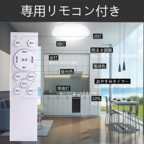 【常夜灯モード、記憶機能、タイマー機能】低消費電力の常夜灯付いており、一人寝て始めてのお子様の部屋また夜間授乳、お年寄りの看護などに最適です。 タイマー機能を設定すると、自動的にシャットダウンできます。電気の節約になり、電源を切るのを忘れたり、電気をつけたまま寝てしまう人に適しています。 記憶機能は選択した明るさを記憶できるので、再び点灯すると同じ
