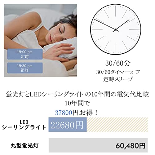 【お好み設定&タイムモード】シーリングライトにはお好きな明るさを設定すると、再開する時、毎回調整必要がなくて楽です。また、LEDシーリングライトに搭載してあるタイマー機能により、自動的に30分/60分閉めれば徐々に暗くなり、閉じることができるので、忘れずに閉