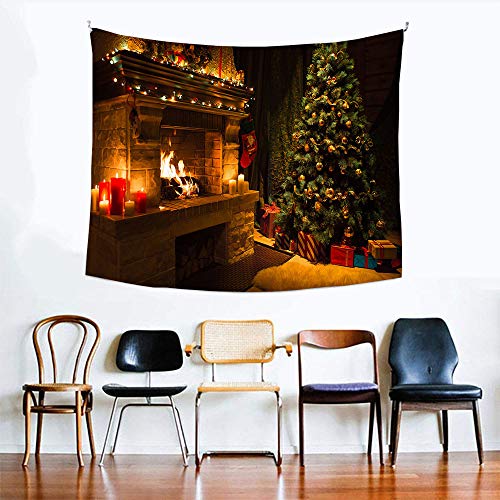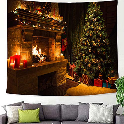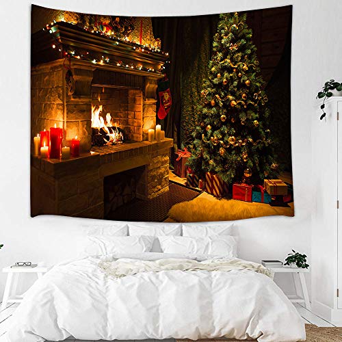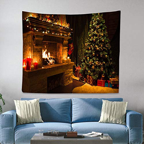 Refoiner タペストリー クリスマス 飾り おしゃれ 壁掛け 飾られたクリスマスツリーと暖炉 明るい火 暖かいクリ