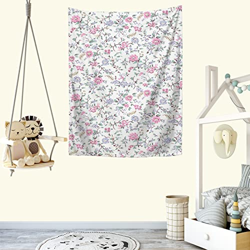 東宝 タペストリー (横幅100cm×縦幅150cm) 葉 花 バラ 花柄 枝 ローズ デザイン おしゃれ 多機能 布