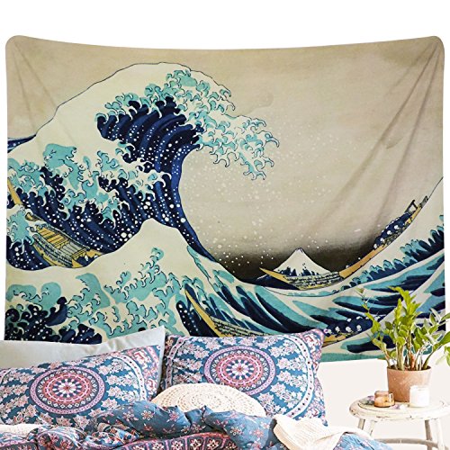 Pknoclan 和風タペストリー 富士山 神奈川沖波裏壁掛け 海の波 山 自然風景壁掛け布 古風装飾布 壁飾り リビン