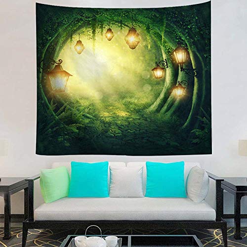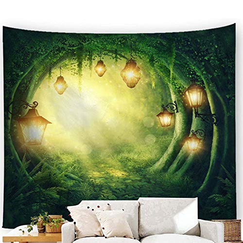 Tibemiタペストリー 多機能壁掛け 背景布 童話世界 夢の森 光 灯火 壁飾り インテリア おしゃれ 布 ポスター 簡