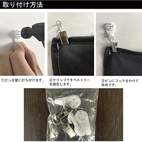 【取り付け簡単】壁に釘を固定します。そして、クリップでタペストリーを挟み、クリップを釘に掛けなさい。使用しやすいです。