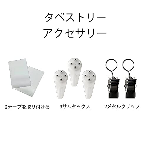パッケージには、タペストリー1枚、無痕フック3個、メタルクリップ2個、マウントテープ2個が含まれています。軽量で、ほかの材料が必要なく、簡単速くに掛けることができ、家装飾の選択肢の一つとなり