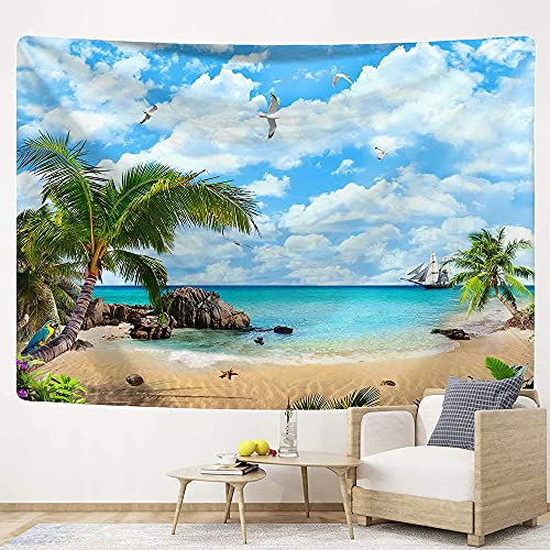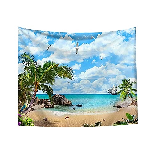 自然風景タペストリー 海とビーチタペストリー ポリエステルタペストリー壁壁飾り装飾用品130*150CM (Blue Sky)