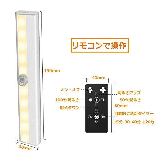 Aeeyui クローゼットライト 電池式 リモコン付き 調光可能 タイマー機能 高輝度 ledライト 省エネ 配線不要 キッ