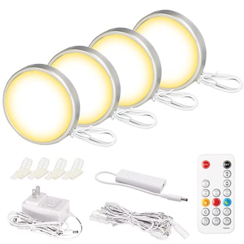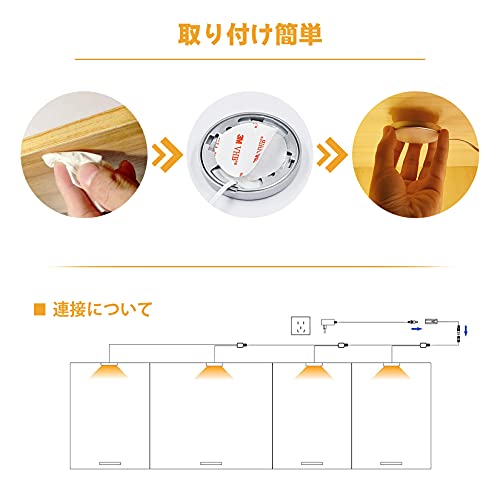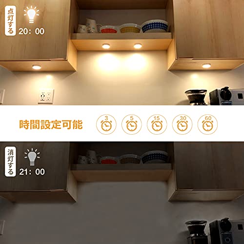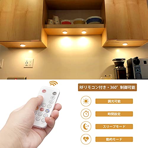 Wobane キッチン用ライト 電球色 4個セット 連接可能 ledキャビネットライト リモコン付き 明るさ調整 時間設定