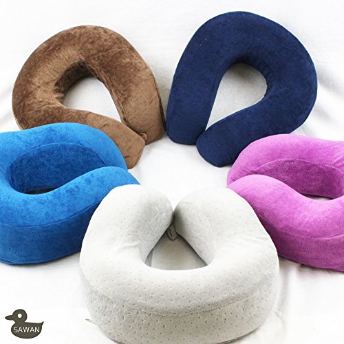 SAWAN U字型 ネックピロー 低反発 360° 洗えるカバー 車内 ビジネスマン お昼寝 疲れない 気持ちいい(ブラウン