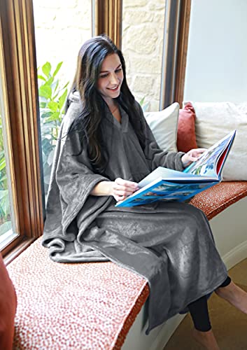 Catalonia 着る毛布 ポンチョ フード付き 着るブランケット ポンチョにもなる2wayブランケット マイクロファイバ