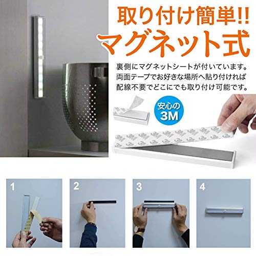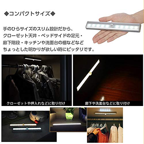 TopYart 人感センサーライト 電池式 屋内 10LED 明るい 自動点灯 消灯 省エネ マグネット貼り付け式 配線不要 補