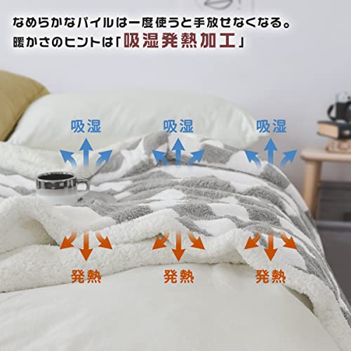 【二枚合わせで贅沢な暖かさ】吸湿発熱加工わたを使用しており、体から発散する汗などの湿気を吸収、熱に変換する繊維を使っているので、暖かい空気を溜めこんで朝までぼかぼか。ほどいい感じのボリューム感で、春と秋はこのモウフ一枚で充分、真冬は掛け布団や羽毛布団と併用すれば完璧です。