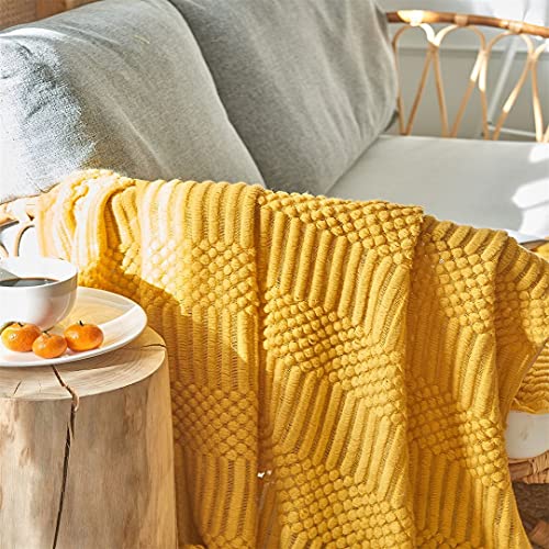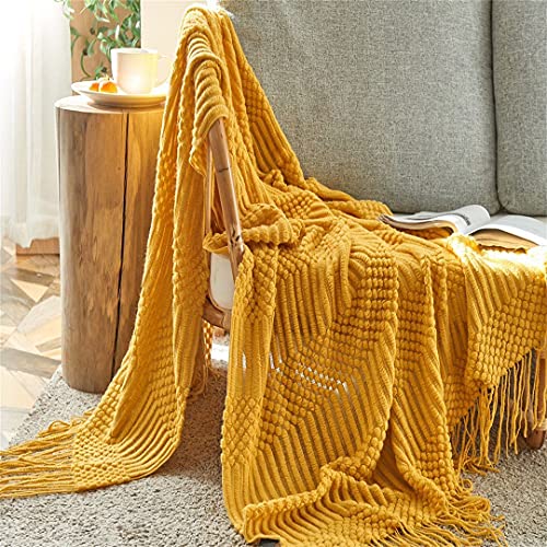 Hisashi ソファベッド用ニットブランケット温かみのある心地よいブランケット水玉模様タッセルオールシーズ
