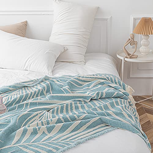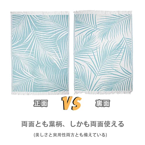 lifesure マルチカバー ブランケット 毛布 ひざ掛け 大判 エアコン対策 北欧風 フリンジ付き 葉柄 丸洗い 通年使
