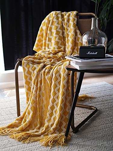 Hisashi ブランケットソファデコレーション 毛布ベッド ニット毛布 フリンジ ホワイトストライプ 140x220cm