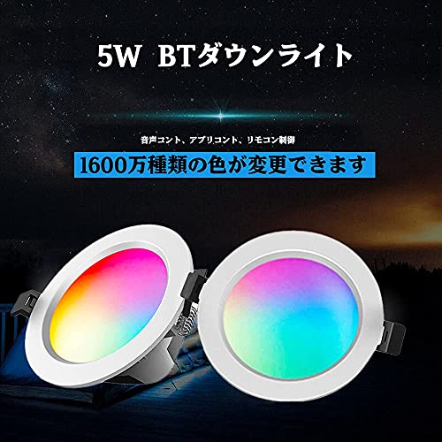「Aotealit」LEDダウンライト 5W RGBW 天井ライト 埋め込み式ライト 調光調色 BT機能 アプリコント 省エネ 安全低熱