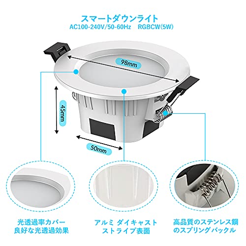 | 商品名 | 「Aotealit」LEDダウンライト 5W RGBW 天井ライト 埋め込み式ライト 調光調色 BT機能 アプリコント 省エネ 安全低熱 |