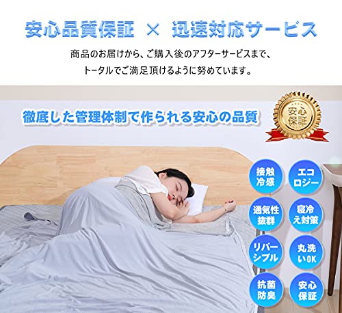 【ひんやり接触冷感】触れた瞬間心地よいひんやり感が伝わり、暑くてなかなか寝付けない夏場にもひんやりとした掛け心地をお楽しみいただけます。 布団に入るときの不快な生ぬるい感じをなくし、すっと冷たくて眠りにつきやすくなります。