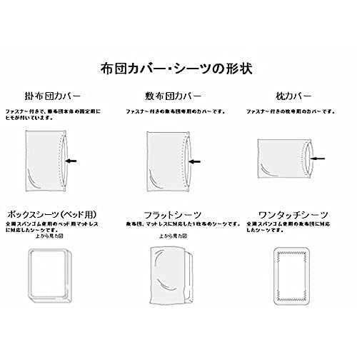 掛布団カバー:150cm×210cm、敷布団カバー:105cm×210cm、枕カバー:43cm×63cm