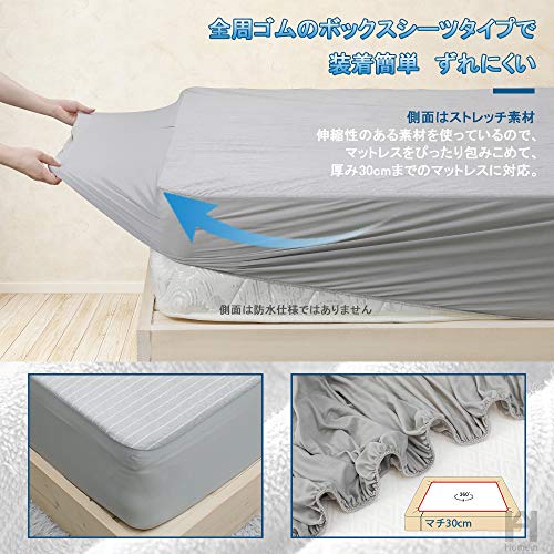 ※注意:1.ボックスシーツの側面(マチ)がメッシュ素材で防水機能性がありません。2.防水性をもたせるために、裏面はコーティング加工(防水素材)が施されます。防水素材の特性上、シャリシャリ音がすることがありますので、予めご理解・ご了承の上でお買い求めくださいませ。