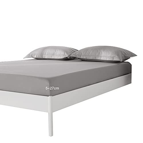 ボックスシーツ シングル・グレー 綿100% 全周ゴム付き マチ部分は約30cm 毛玉なし 抗菌防臭 丸洗できる100x200x