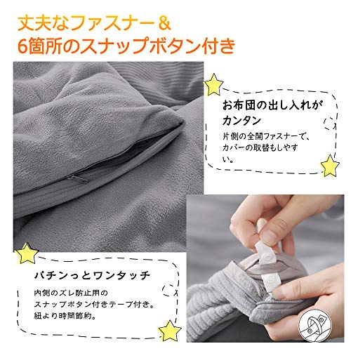 【あったかフリース素材】柔らかなマイクロフリースのあたたかい掛け布団カバーです。吸湿発熱糸にキメの細やかなマイクロフリース素材を採用し、体から出る熱を利用して保温力がアップ!軽量なので、身体への負担も少なく、快適な睡眠をサポートします。