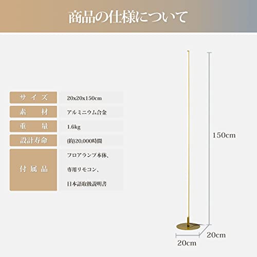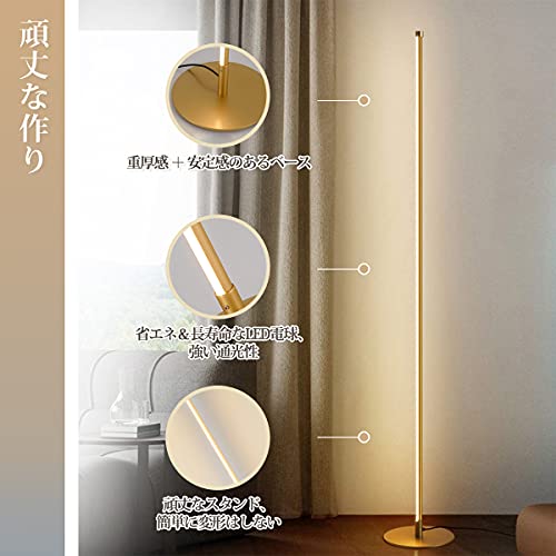 ?お部屋の雰囲気がガラッと変わる!?150cmの華奢なラインが特徴のフロアライト!エレガントなゴールドフロアランプがどんなお部屋にも合わせやすく雰囲気を明るくスタイリッシュに。様々なシーンに応じて、それぞれのお部屋に最適な照明を選ぶことで、快適でおしゃれな空間を演出してくれます。美しく設計されたランプは、理想的な雰囲気を作りお部屋をお洒落に彩ります。空間を取らず、様々な場所対応!数か所置くところでお部屋の雰囲気が一気に変わります。間接照明で、細身がとてもスタイリッシュで置き場所にもソファやベッドサイドに置くことでがらりと雰囲気を変える。居間や洋室のデザインだけでなく、和室のデザインにも適しています。