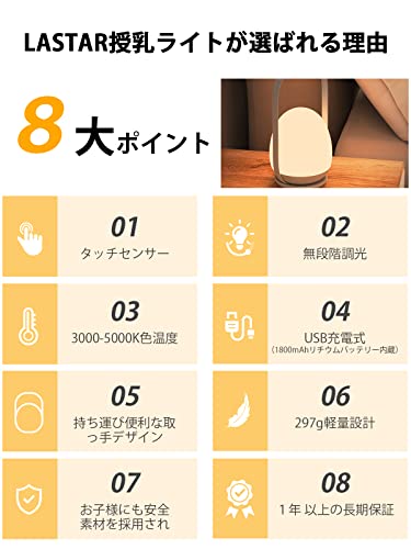 | 商品名 | ベッドサイドランプ LASTAR ナイトライト タッチセンサー 明るさ調節 USB-C充電式 ベッドサイドライト 間接照明 |