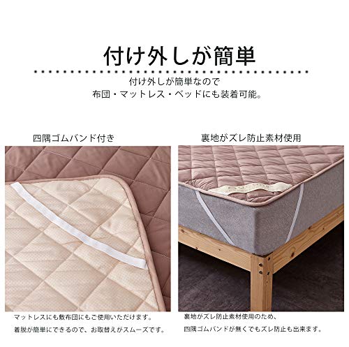 カラー:ブラウン サイズ:シングル・100X200cm 表面:綿100%/グランド・ポリエステル100%、裏面:裏地がズレ防止素材使用 ポリエステル100%、中わた:中綿入り 抗菌防臭わた使用