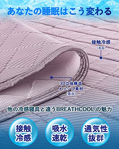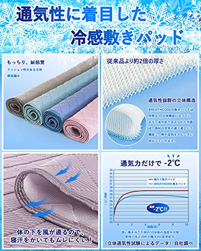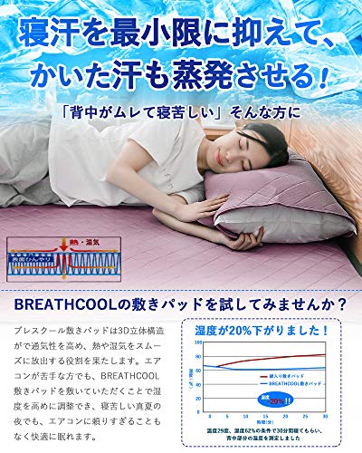?【接触冷感と通気性を発揮する敷パッド】日本人の想いを叶えた「もっちり・新感覚」+「気持ち良い肌触り」+「高通気性」と「接触冷感」を備えた立体構造の夏用敷きパッドです。Breathcool (ブレスクール)敷パッドのメッシュ生地は普通の?約2倍の厚さがあり、敷くだけで、あなたの睡眠は変わります。