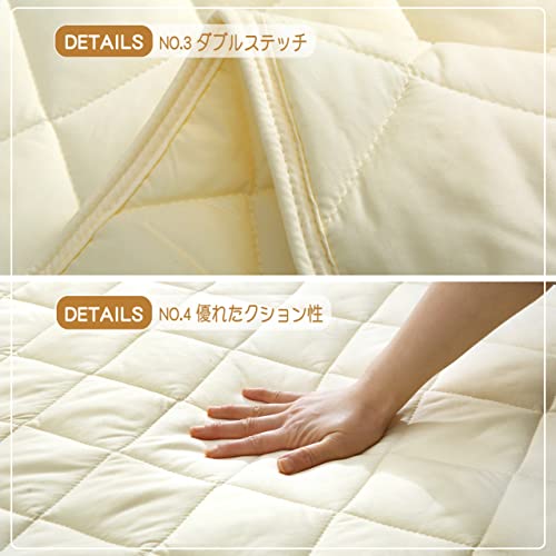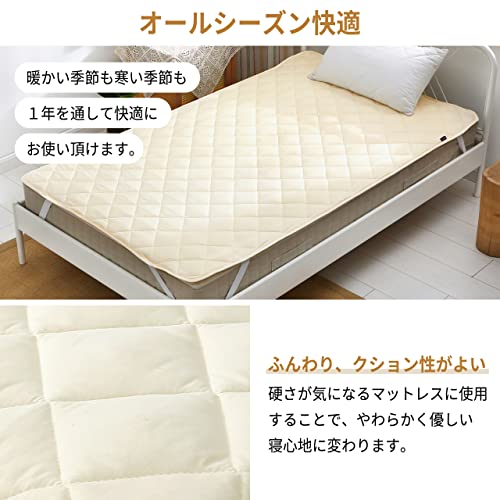 【寝心地アップ】クッション性に優れた中綿を充填して、ふんわり心地よい寝心地を実現しました。普通より厚くて、柔らかさと反発性を兼ね備えたベッドパッドです。オールシーズンずっと心地よくお休みいただける品質にもこだわりました。