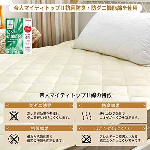 ベッドパッド TEIJIN(帝人)マイティトップII中綿使用 抗菌・防臭・防ダニ加工 洗える 四隅強化ゴムバンド付き