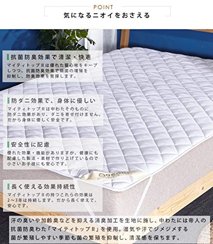 通気性に優れたメッシュ素材に、汗の臭いや加齢臭などを抑える消臭加工を施した、吸水速乾敷きパッド。中わたには帝人の抗菌防臭わた「マイティトップ」を使用し、菌の繁殖を抑制し清潔感を保ちます。さらっとした肌さわりでムレにくく、暑い季節もベタつきにくい。