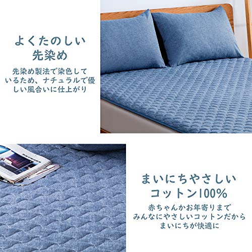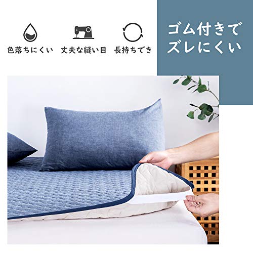 先染め綿100%使用の敷きパッド 「カラー」:ネイビー 「サイズ」:シングル・100X205cm 「表面」:綿100%、変な匂いがなく、肌ざわりがソフト、肌にとても優しいです。「裏面」:裏地がズレ防止素材使用 ポリエステル100%。「中わた」:ポリエステル100% 中綿入り 抗菌防臭わた使用。先染め製法で染色しているため、ナチュラルで優しい風合いに仕上がります。色落ちもしにくいです。