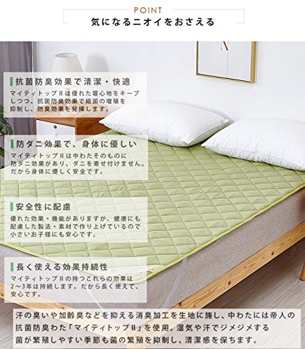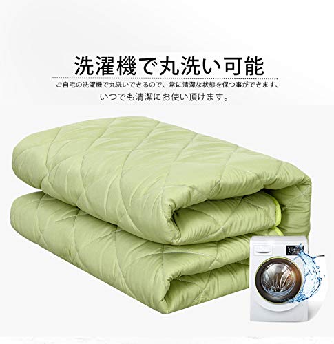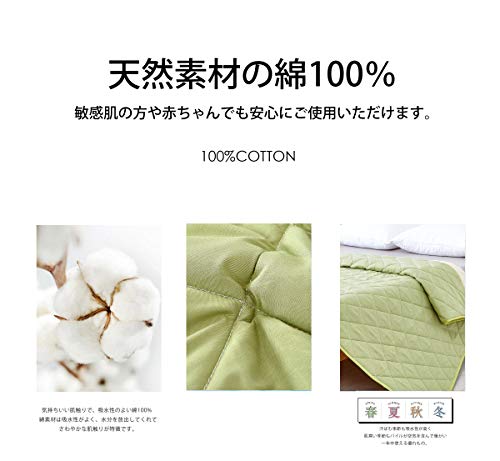 カラー:グリーン サイズ:セミダブル・120X200cm 表面:綿100%/グランド・ポリエステル100%、裏面:裏地がズレ防止素材使用ポリエステル100%、中わた:中綿入り 抗菌防臭わた使用