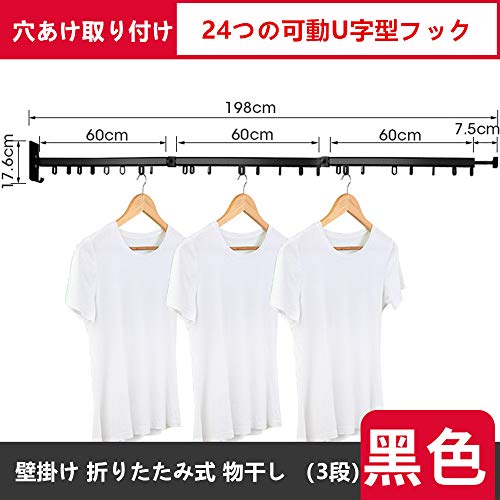 Homeme 洗濯物干し 室内物干し 3段 耐荷重50KG 折りたたみ式 穴あけ 壁掛け 隠し物干し 宇宙アルミニウム 布団干