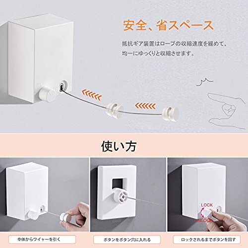 DY.2ten 室内物干しワイヤー 部屋干し 物干しロープ 伸縮式室内干し 壁掛け 洗濯物干し 304ステンレス 防水 防錆