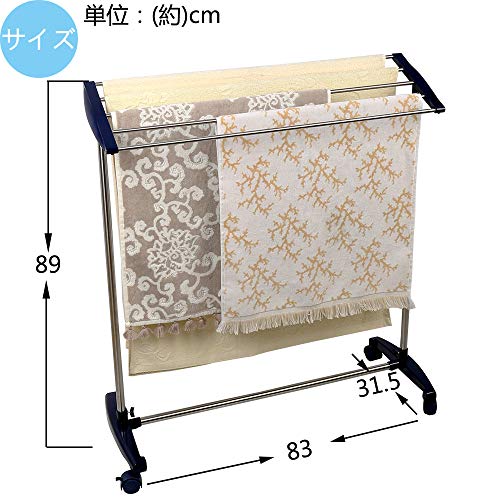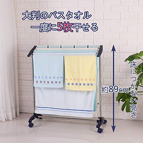 室内タオル干しハンガーです、キャスター付き移動便利、工具不要で簡単に組立できます。少なくても大判のバスタオルは5枚、又はフェイスタオル10枚を干せることができます。通風性良好、乾きやすいです。
