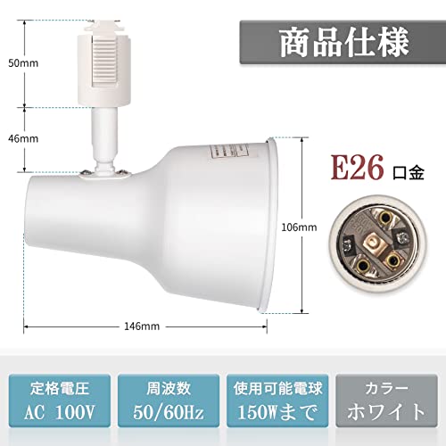 【商品仕様】口金:E26、定格電圧:AC100V、色:ホワイト、使用可能電球:150Wまで LED電球対応