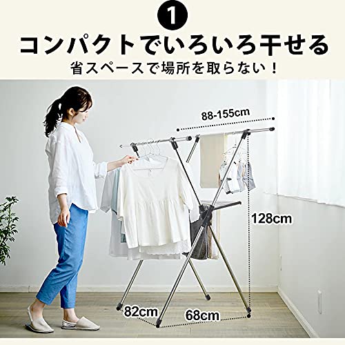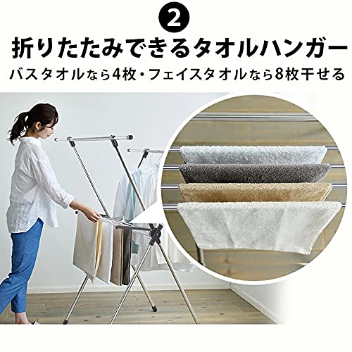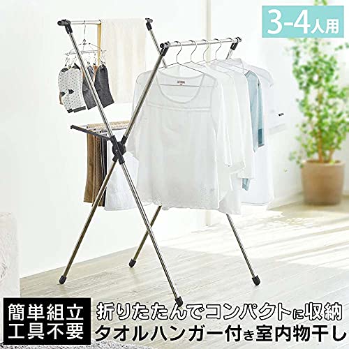 BAOYOUNI 室内物干し 洗濯物干しスタンド X型 タオルハンガー付き 室内 ベランダ 物干しラック - 耐荷重 ステン