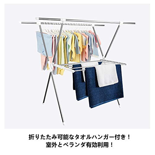サイバーマンデーセール開催中、ご注文はお早めに!「X型デザイン、伸縮自由」新品登場!newデザインのX型物干しスタンド!X型は2本のバーを使えるので、洗濯物を容量たっぷり干すことができます。X型構造により荷重を分散し、安定性が良い!折りたたみやすいのでコンパクトに収納できる、一人暮らしや省スペースに最適のサイズです。竿の両端が伸びるので、多くの洗濯物が